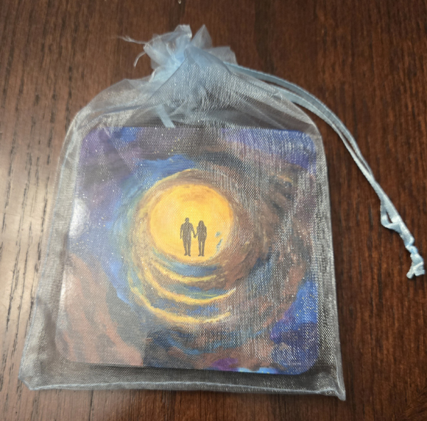 Hardboard cork-backed high-gloss coasters measure 3.75″ square. These coasters are highly durable and washable. Perfect for resting your favorite beverage on. They come in a set of 4 with a netted poly bag.